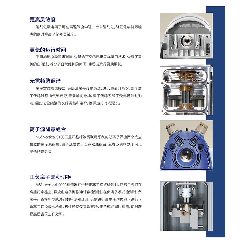 依利特MS Vertical 9100波質(zhì)聯(lián)用色譜系統(tǒng),采用雙離子激設(shè)計,讓您輕松完成不同離子源間的切換。運用熱源誘導脫溶劑技術(shù),獲得更好的靈歌度、更高的重現(xiàn)性,使儀器系統(tǒng)更穩(wěn)定。與之相匹配的色諾工作站簡化了整個質(zhì)譜儀工作流程,如方法開發(fā)、數(shù)據(jù)處理以及報告打印等操作簡單易行;同時儀器間方法轉(zhuǎn)移時無對需質(zhì)諾參數(shù)重新優(yōu)化,即可直接進行分析檢測。